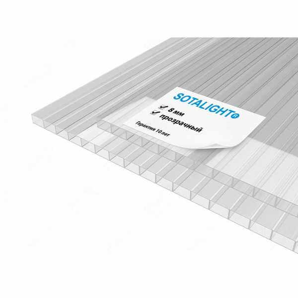 Сотовый поликарбонат 8 мм SOTALIGHT прозрачный 2100х6000 мм