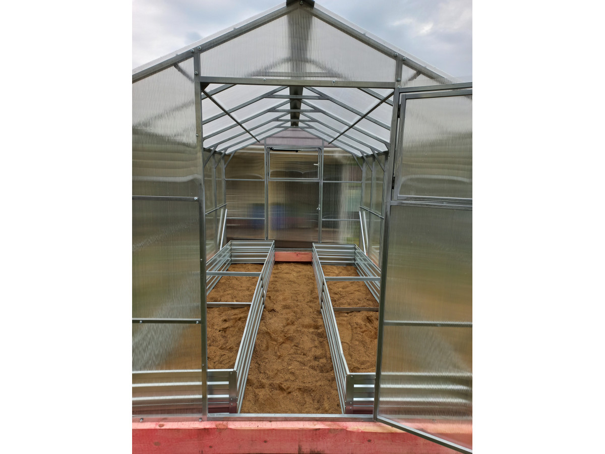 • практичный каркас с дверьми и форточками в каждом торце обеспечивает легкий доступ в теплицу и её проветривание;