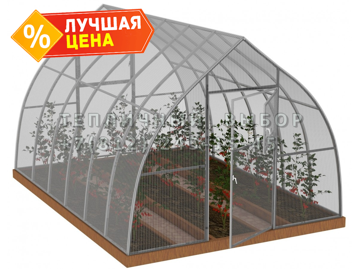 Теплица из поликарбоната Усиленная Капелька 3х4 h=2.3 м профиль 25х25 мм