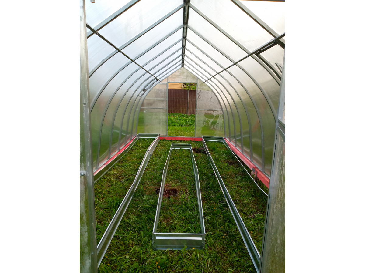 • оптимальная ширина теплицы позволяет организовать до 3 грядок и 2 проходов в ней
